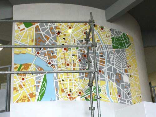 28 panneaux de plexiglass peints, 322 x 184 cm installés sur une portion de mur cylindrique dans le bâtiment E4 de l'université |
