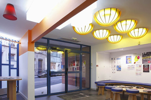 La proposition qui m'a été offerte de créer un projet pour cette maison de quartier, m'a orienté à développer une pensée plutôt globale pour l'espace du lieu. C'est-à-dire réfléchir simultanément à la question d'un signe fort ; un éclairage qui soit en même temps signe et oeuvre, faire du « nettoyage visuel » dans l'espace, c'est-à-dire faire de la place. Egalement produire un nouveau mobilier simple et cohérent. Enfin prendre en compte la circulation et ses rites liés aux différents usages que propose cette maison de quartier. Le fait de reconsidérer globalement l'éclairage, autant comme un signe identifiable que comme un apport de lumière, posait tout de suite la question de la cohérence intérieure et extérieure qui permettrait une lisibilité et une identité évidente de ce lieu.