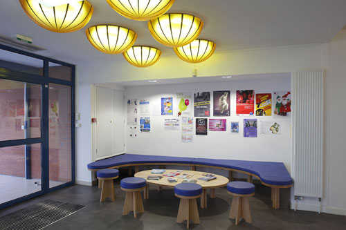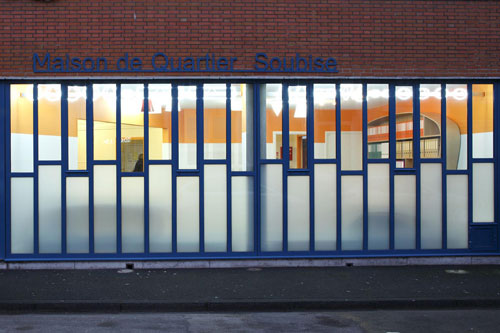 Hall d'accueil de la maison de quartier et façade, photographies E. Watteau