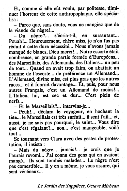 He accumulates violent images ( he needs something emblematic ) and classifies them in a file closet ( two thousand slides ). He accumulates sex and violence. Images of historical violence in particuliar, those from documentaries. Cannibalism has an aisle to itself, photos of scarring and tattoos as well.