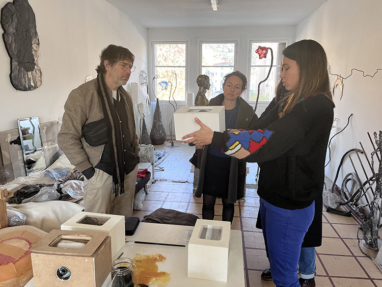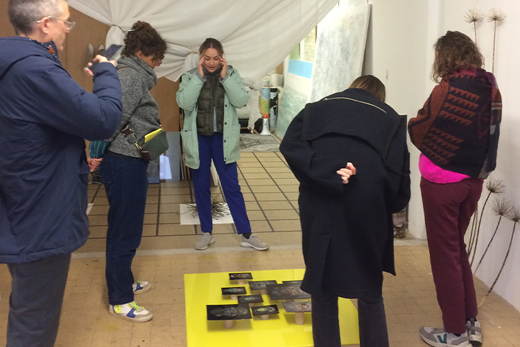 | Documents d’artistes organise un séjour en immersion avec un accompagnement « à la carte » en fonction des intérêts de chacun·e. Chaque meet-up se déroule sur 3 jours, il est l’occasion pour 4 commissaires et/ou critiques d'art de découvrir le travail d’une douzaine d’artistes. Les personnalités invitées ont des profils différents, extra-territoriaux, elles sont accompagnées dans leur prospection. Nous tentons d’associer commissaire d’exposition indépendant·e, directeur·rice de centre d’art / institution, directeur·rice de lieu intermédiaire / artist-run space. Dans le parcours, nous sommes attentif·ive·s aux différentes générations d’artistes et aux pratiques, ce qui est assez représentatif de notre travail documentaire. Chaque session fait l’objet de l’édition d’une brochure bilingue sur laquelle est indiqué le parcours de l’artiste, un visuel, son contact direct ainsi qu’un lien vers son dossier en ligne. |